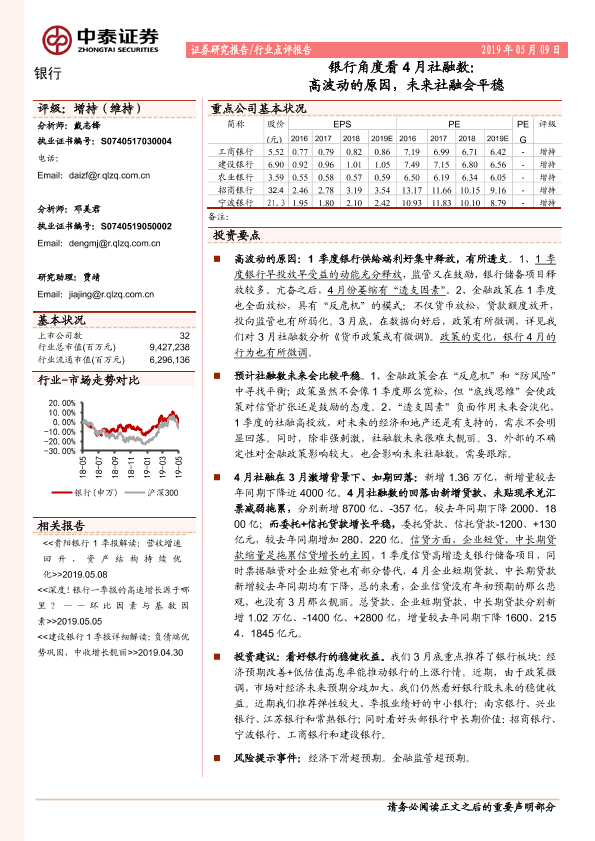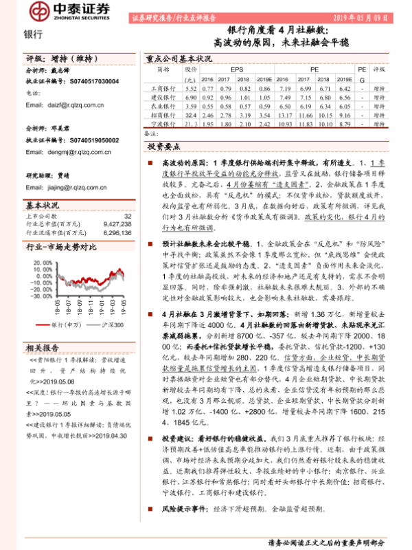 【中泰证券】【20190509】银行角度看4月社融数:高波动的原因,未来社融会平稳-10页