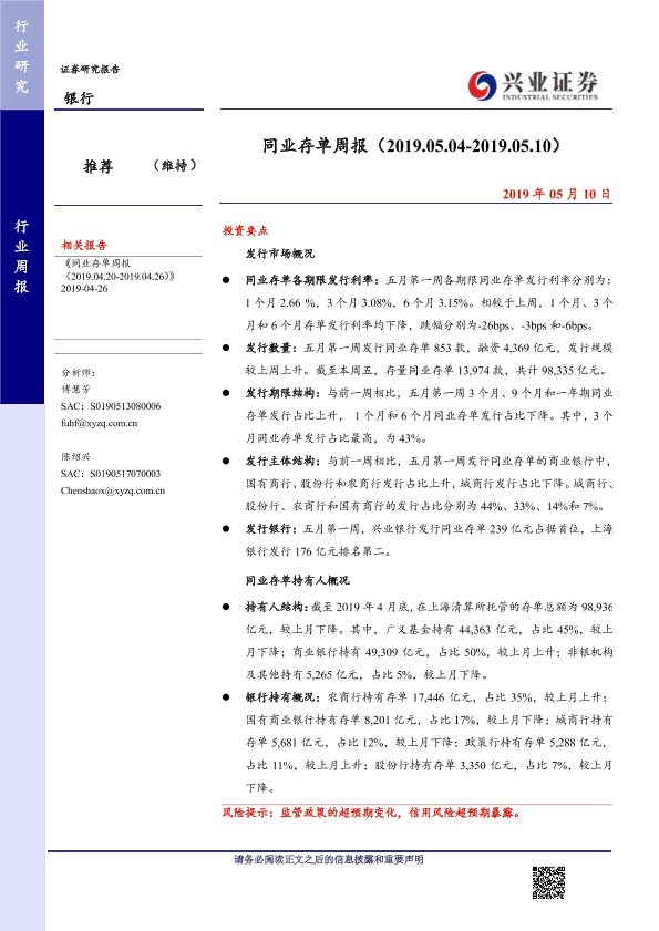 【兴业证券】【20190510】同业存单周报-10页