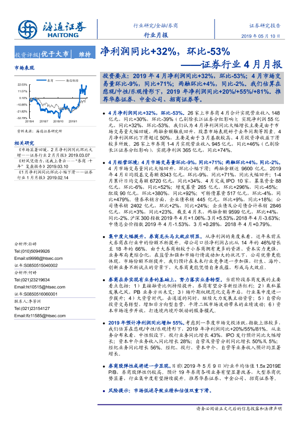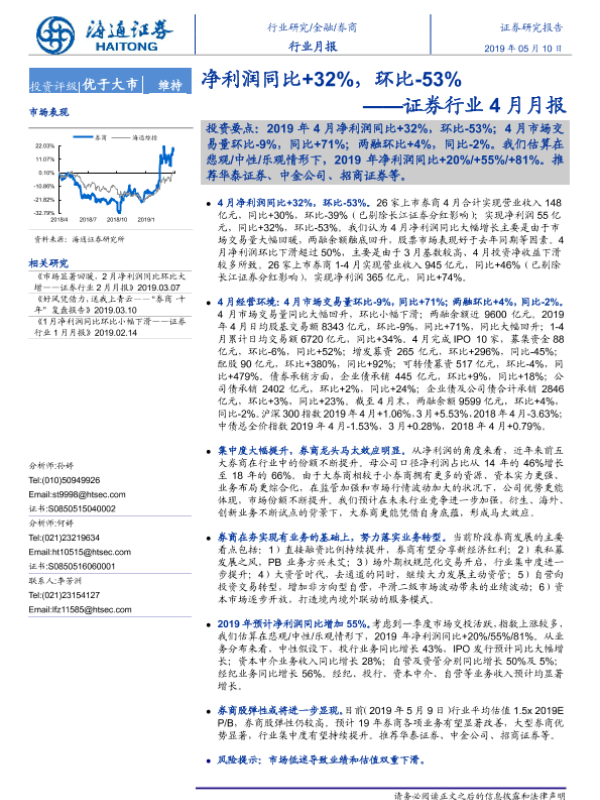 【海通证券】【20190510】证券行业4月月报:净利润同比+32%,环比-53%-8页