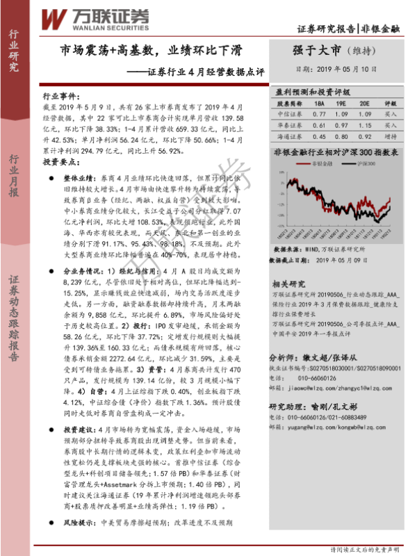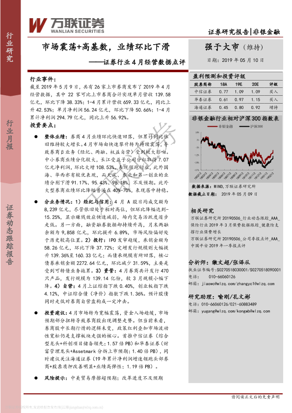 【万联证券】【20190510】证券行业4月经营数据点评:市场震荡+高基数,业绩环比下滑-8页