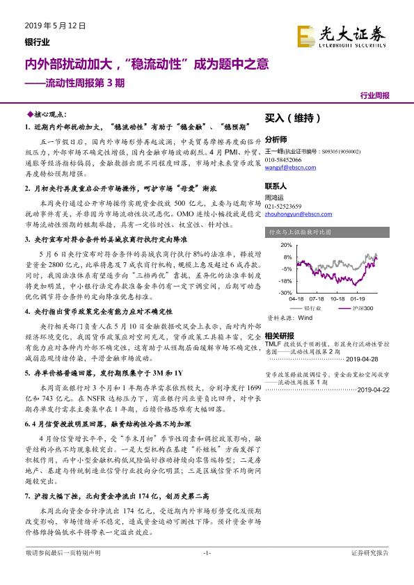 【光大证券】【20190512】银行业流动性周报第3期:内外部扰动加大,“稳流动性”成为题中之意-10页