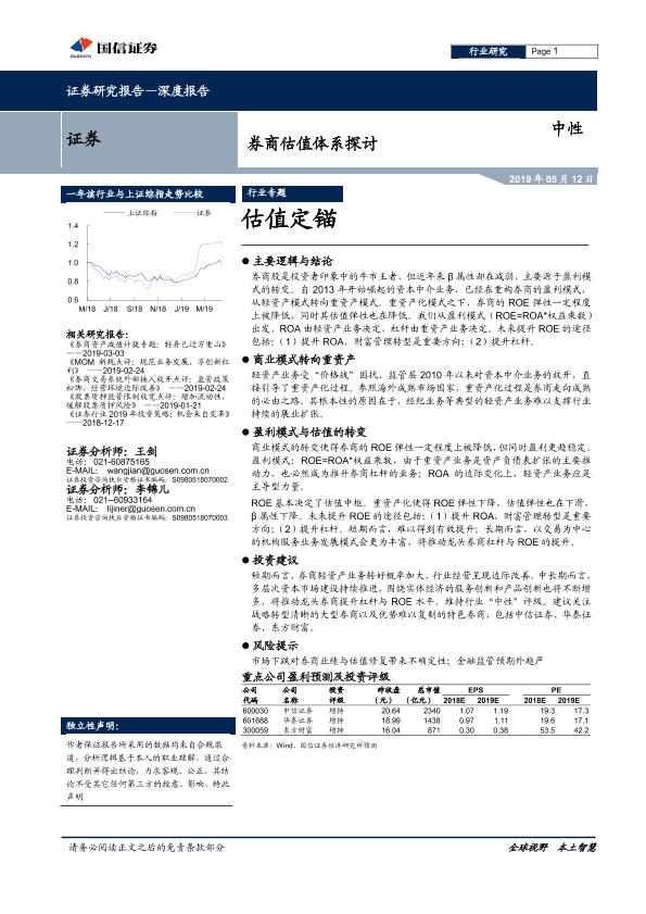 【国信证券】【20190512】券商估值体系探讨:估值定锚-17页