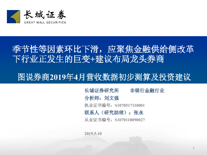 【长城证券】【20190510】图说券商2019年4月营收数据初步测算及投资建议-39页