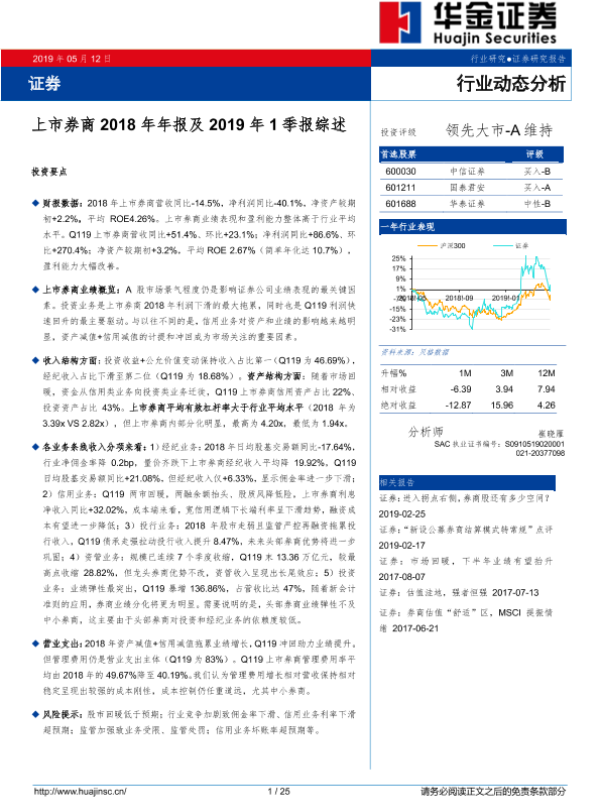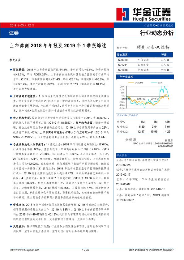 【华金证券】【20190512】上市券商2018年年报及2019年1季报综述-25页
