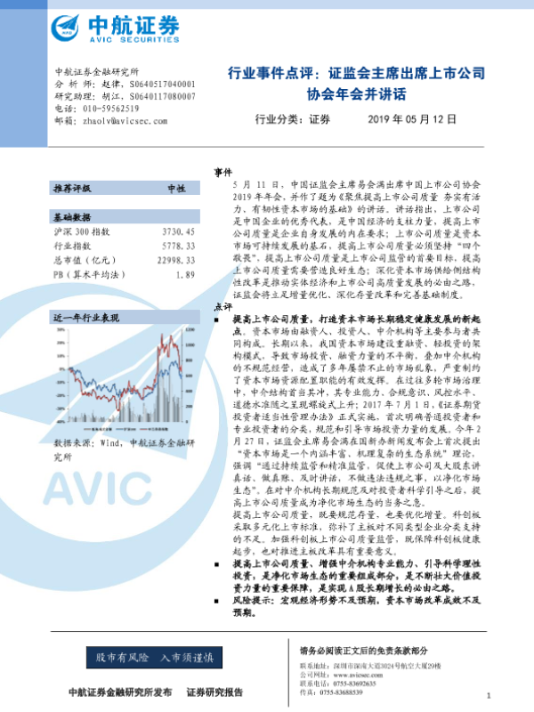 【中航证券】【20190512】证券行业事件点评:证监会主席出席上市公司协会年会并讲话-3页