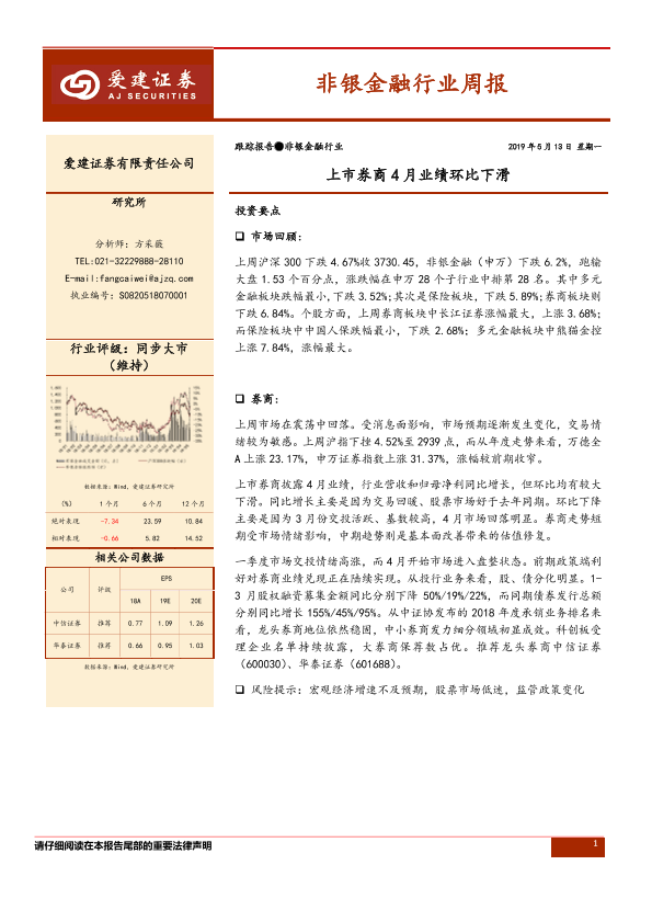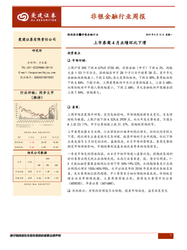 【爱建证券】【20190513】非银金融行业周报:上市券商4月业绩环比下滑-11页