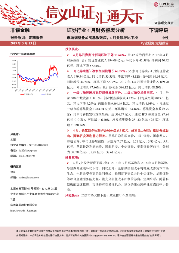 【山西证券】【20190513】证券行业4月财务报表分析:市场调整叠加高基数效应,4月业绩环比下滑-6页