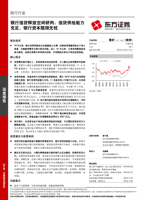 【东方证券】【20190514】银行信贷释放空间研判:信贷供给能力充足,银行资本瓶颈无忧-23页