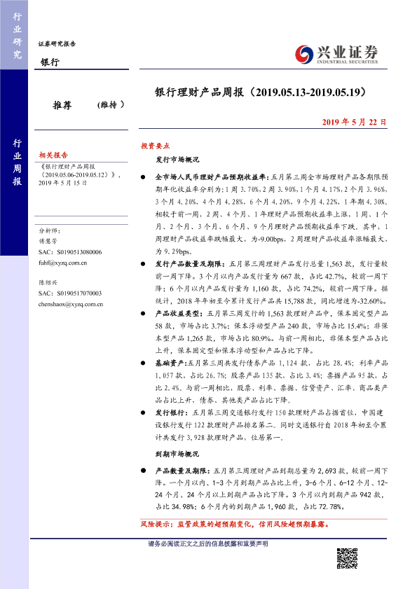 到期市场 发行市场 金融市场分析 银行理财 预期收益率