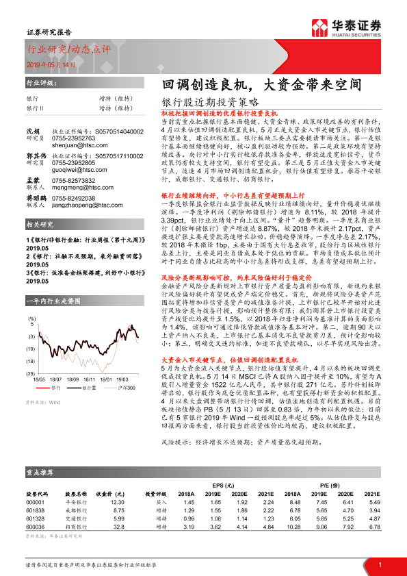 【华泰证券】【20190514】银行股近期投资策略:回调创造良机,大资金带来空间-10页