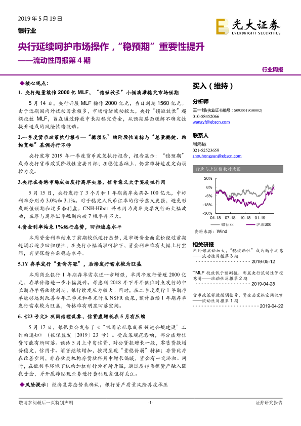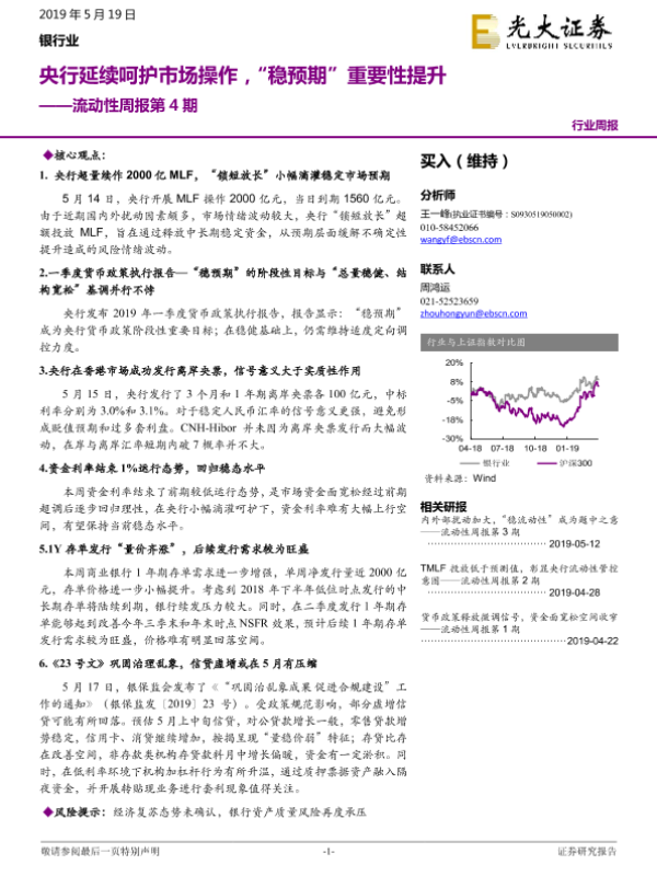 【光大证券】【20190519】银行业流动性周报第4期:央行延续呵护市场操作,“稳预期”重要性提升-9页