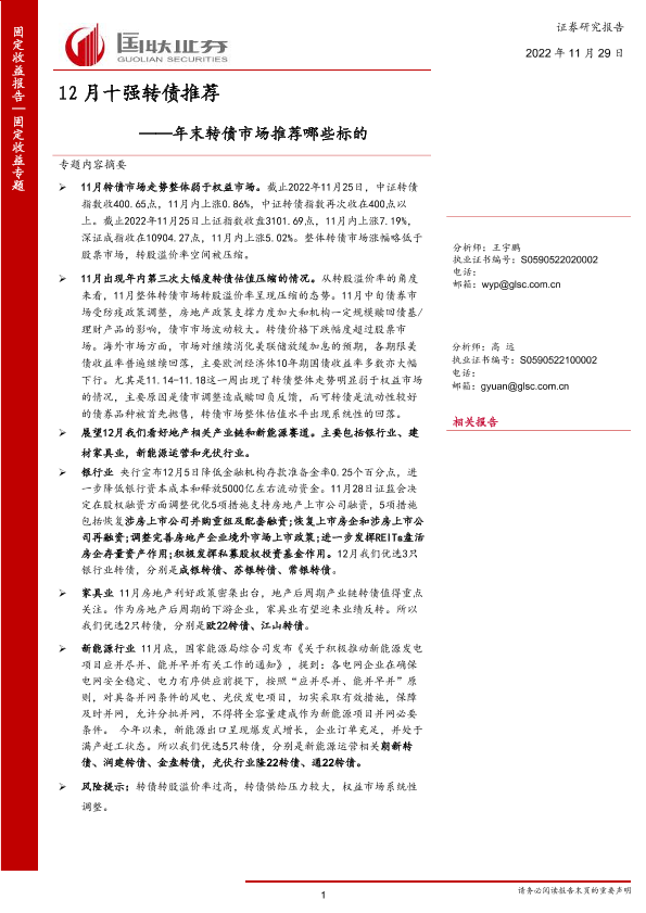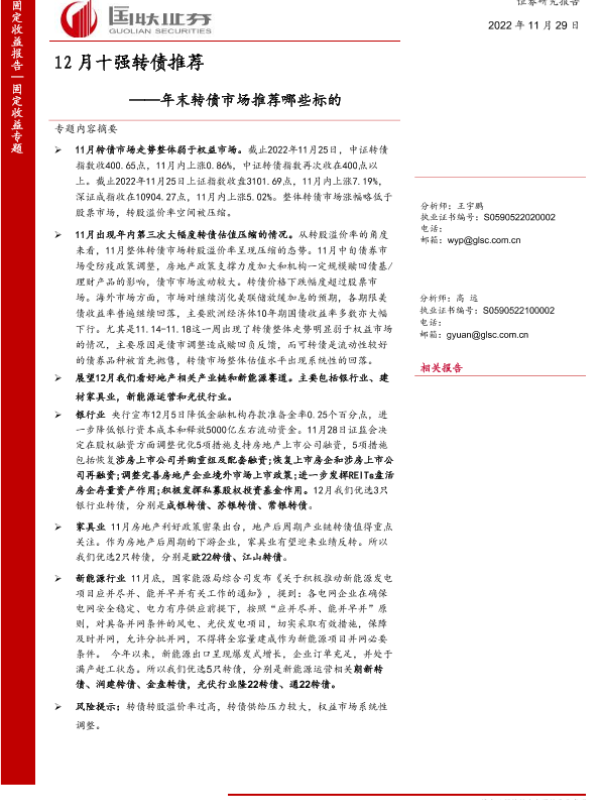 【国联证券】【20221129】12月十强转债推荐:年末转债市场推荐哪些标的-14页