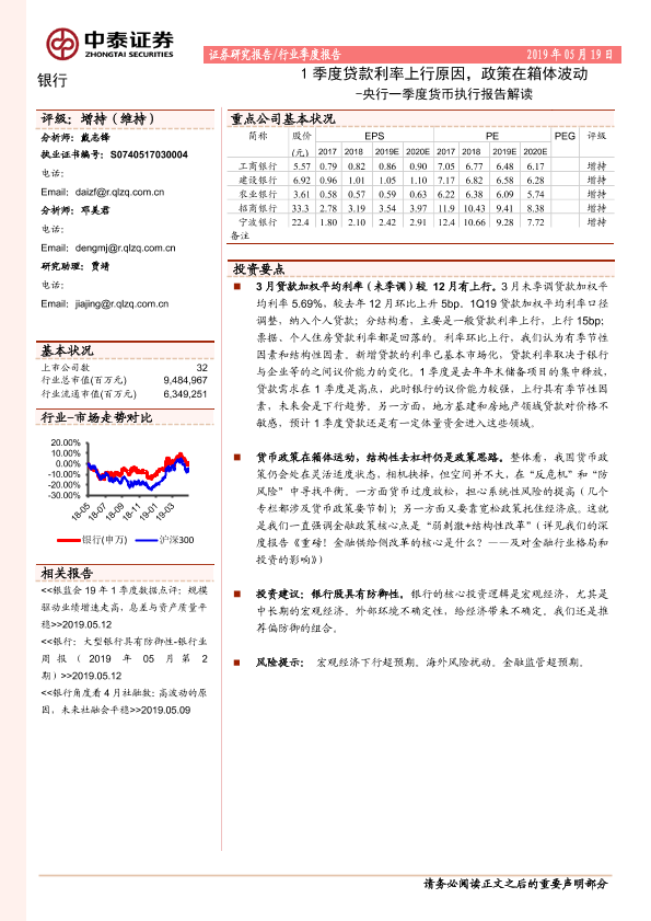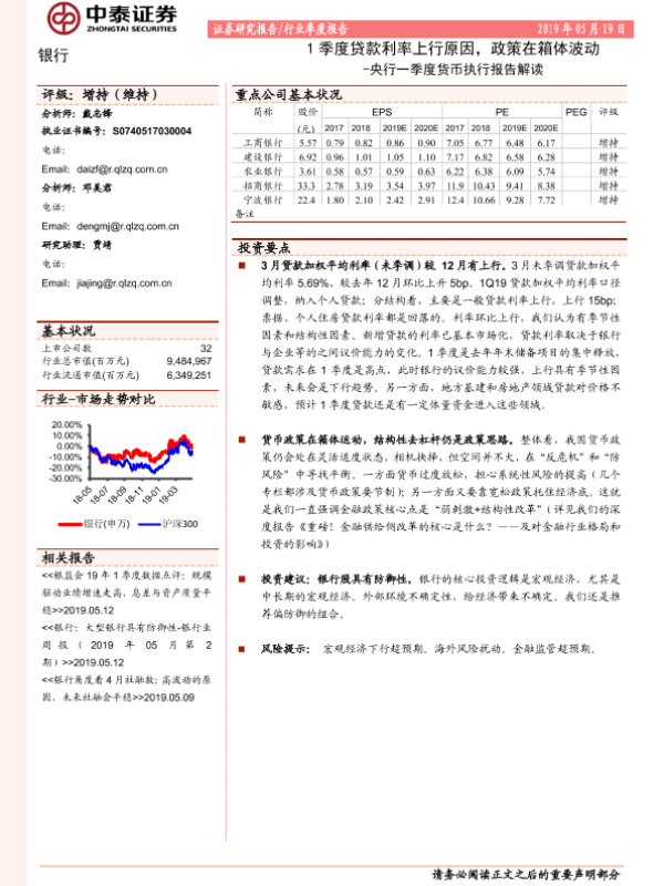【中泰证券】【20190519】央行一季度货币执行报告解读-1季度贷款利率上行原因,政策在箱体波动-9页