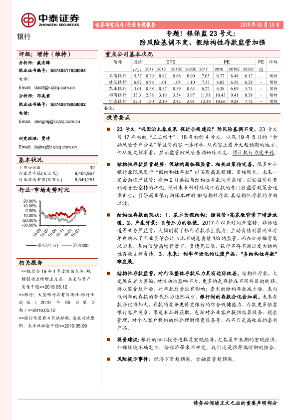 【中泰证券】【20190519】银保监23号文:防风险基调不变,假结构性存款监管加强-12页