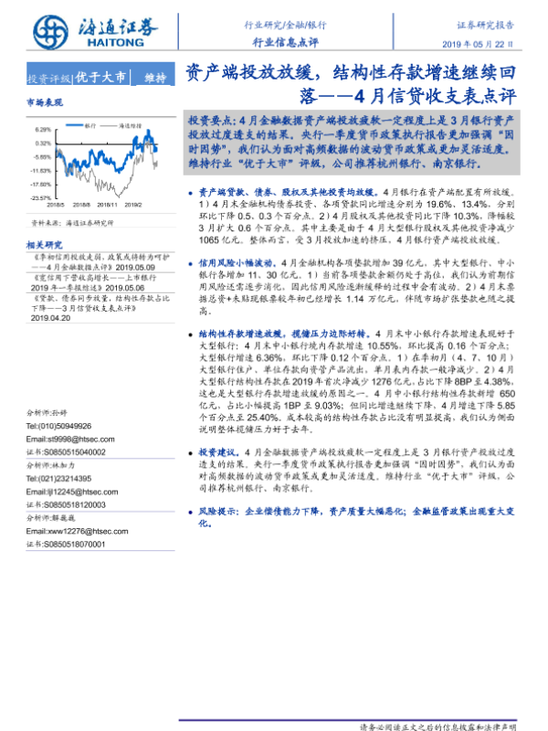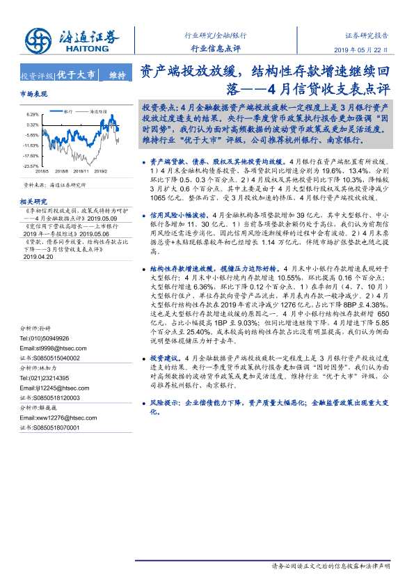 【海通证券】【20190522】银行4月信贷收支表点评:资产端投放放缓,结构性存款增速继续回落-3页