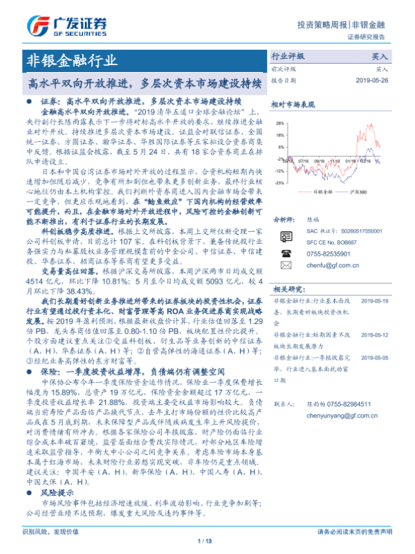 【广发证券】【20190526】非银金融行业 投资策略周报:高水平双向开放推进,多层次资本市场建设持续-13页