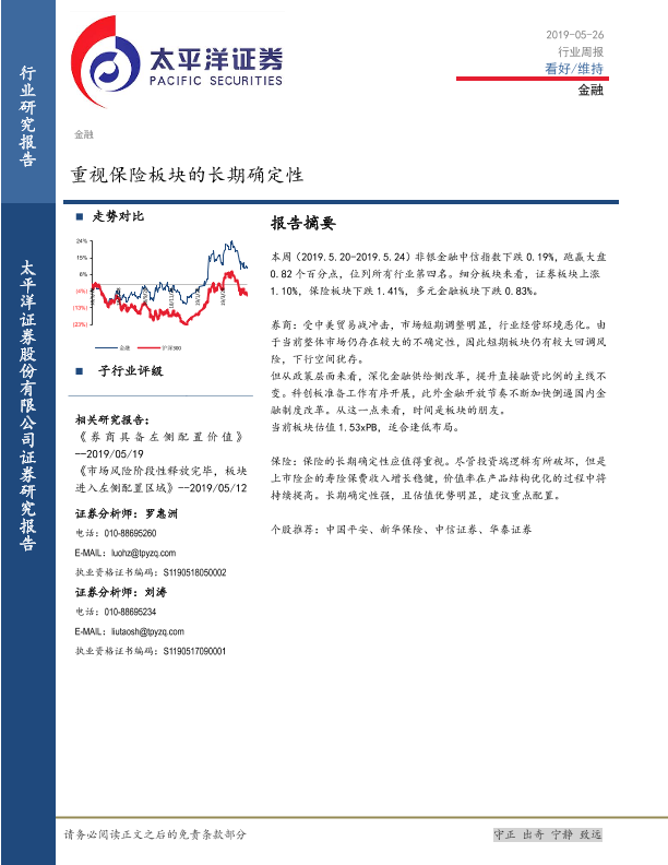【太平洋证券】【20190526】重视保险板块的长期确定性-13页