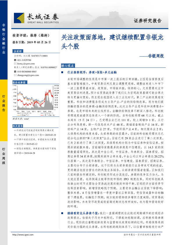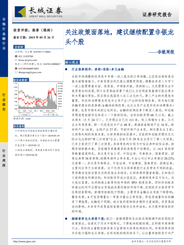 【长城证券】【20190526】非银周报:关注政策面落地,建议继续配置非银龙头个股-35页