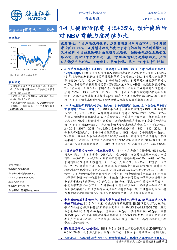 【海通证券】【20190529】1-4月健康险保费同比+35%,预计健康险对NBV贡献力度持续加大-5页