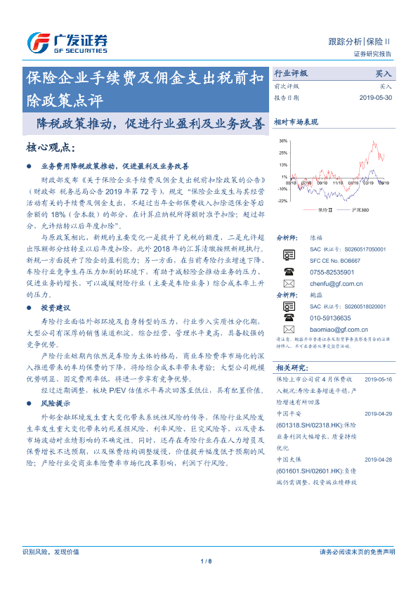 【广发证券】【20190530】保险企业手续费及佣金支出税前扣除政策点评:降税政策推动,促进行业盈利及业务改善-8页