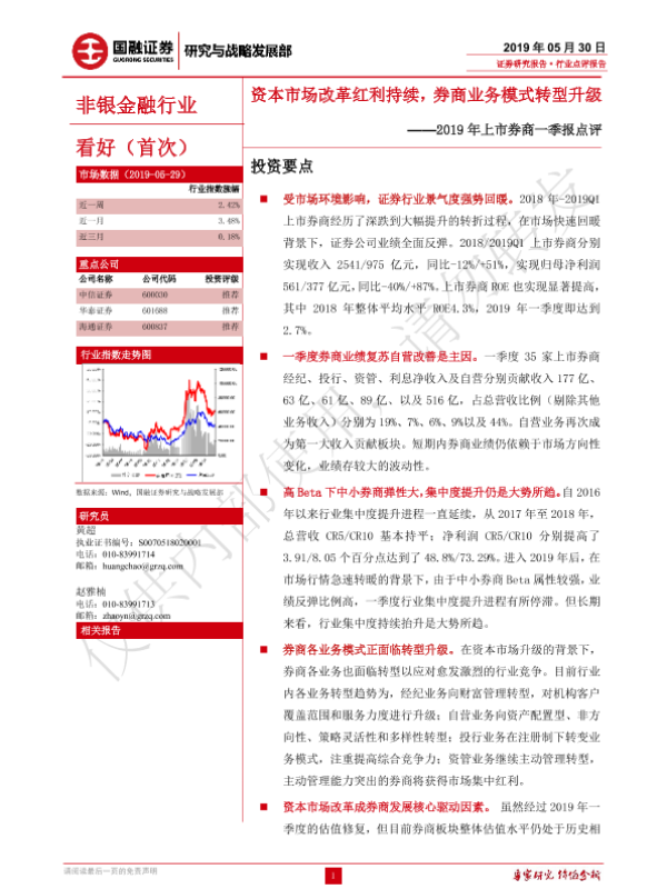 【国融证券】【20190530】非银金融行业:2019年上市券商一季报点评-15页