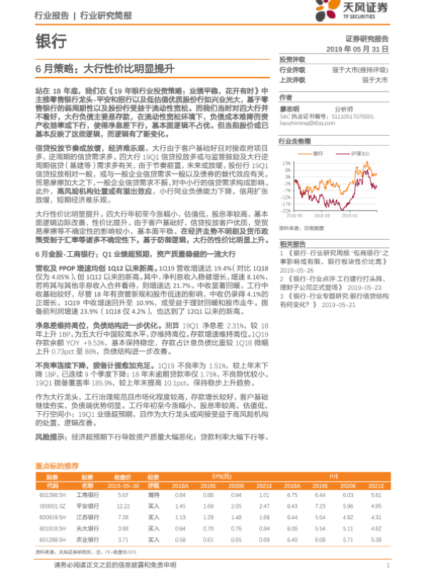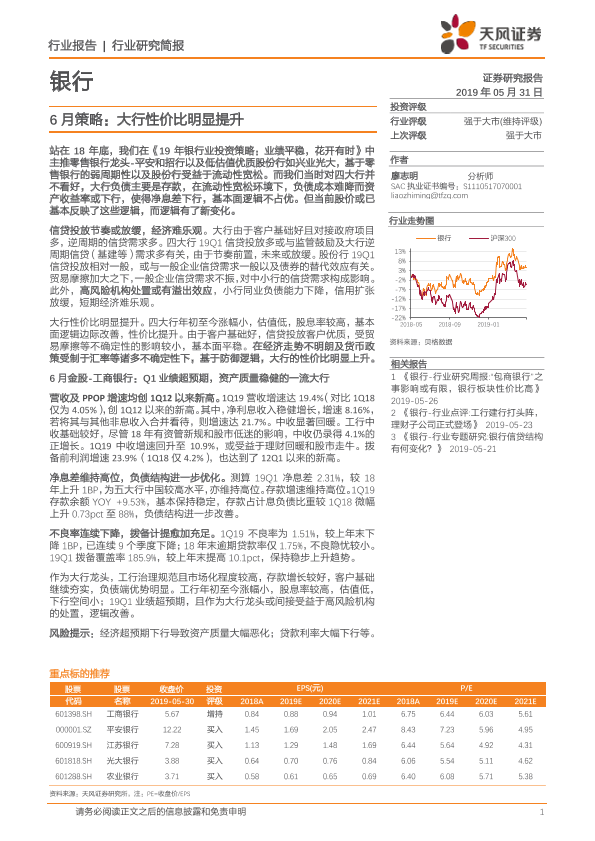 【天风证券】【20190531】6月策略:大行性价比明显提升-5页