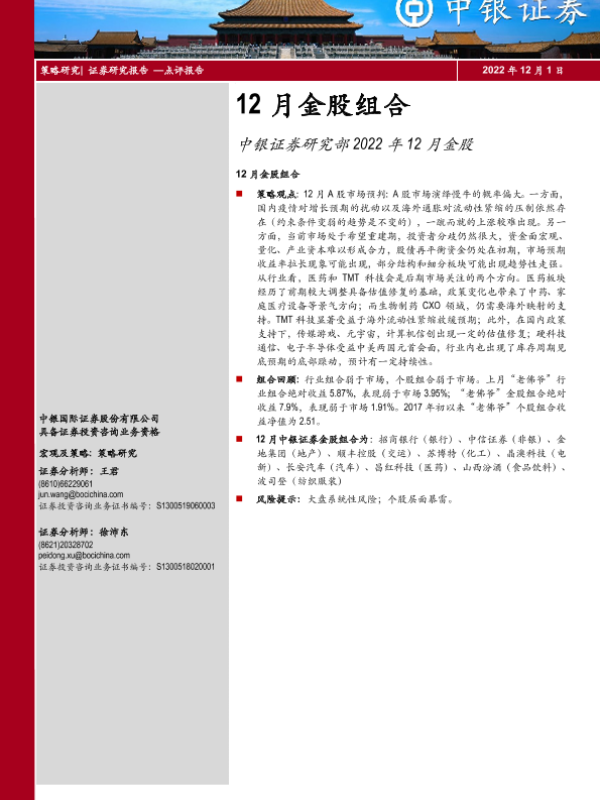 【中银证券】【20221201】12月金股组合:中银证券研究部2022年12月金股-17页