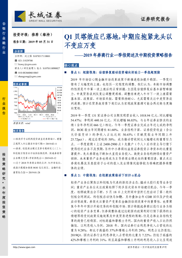 【长城证券】【20190531】2019年券商行业一季报简述及中期投资策略报告-44页