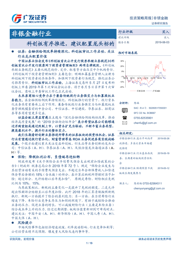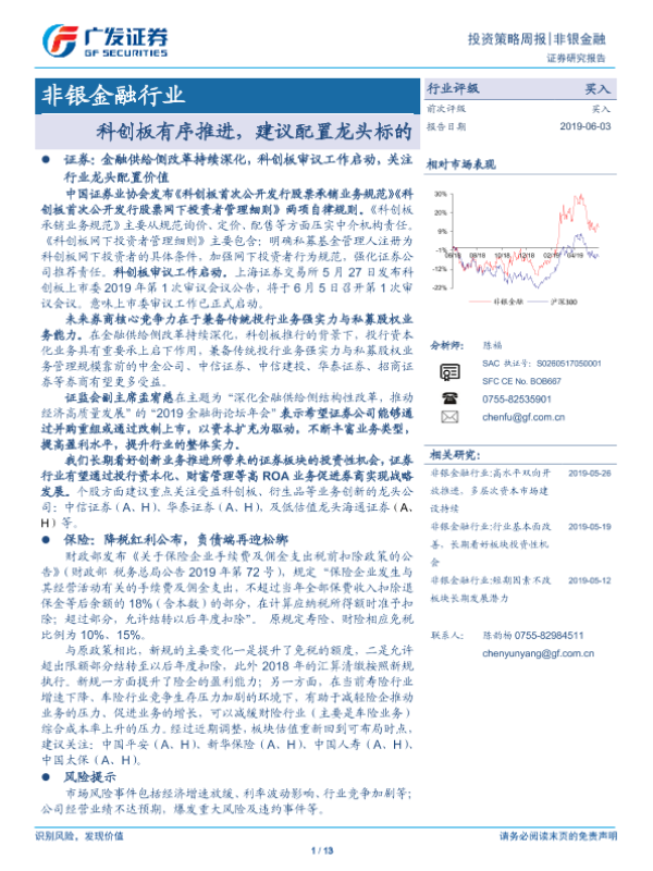 【广发证券】【20190603】非银金融行业投资策略周报:科创板有序推进,建议配置龙头标的-13页