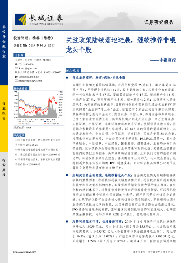 【长城证券】【20190602】非银周报:关注政策陆续落地进展,继续推荐非银龙头个股-34页