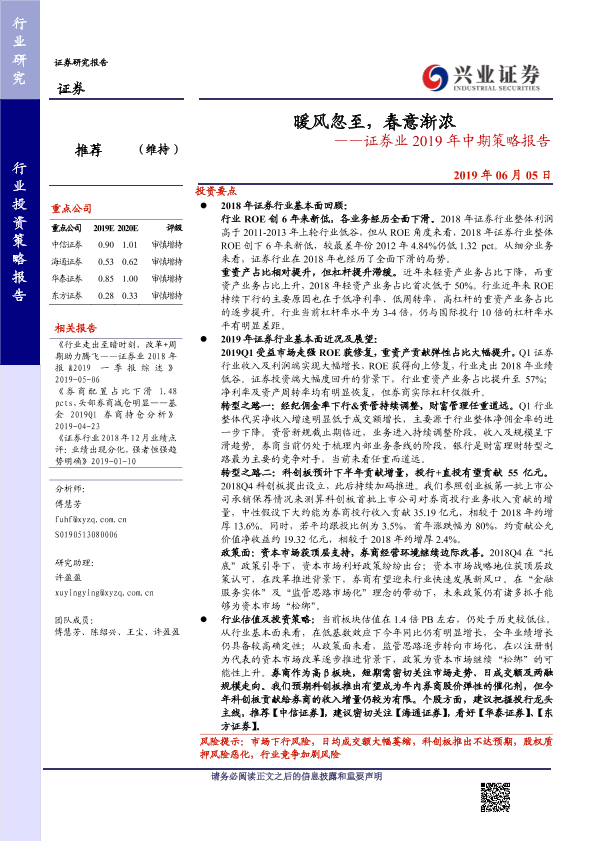 【兴业证券】【20190605】暖风忽至,春意渐浓——证券业2019年中期策略报告-29页