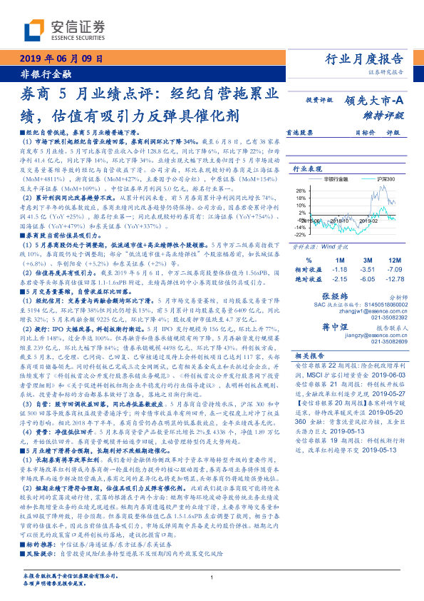 【安信证券】【20190609】券商5月业绩点评:经纪自营拖累业绩,估值有吸引力反弹具催化剂-8页