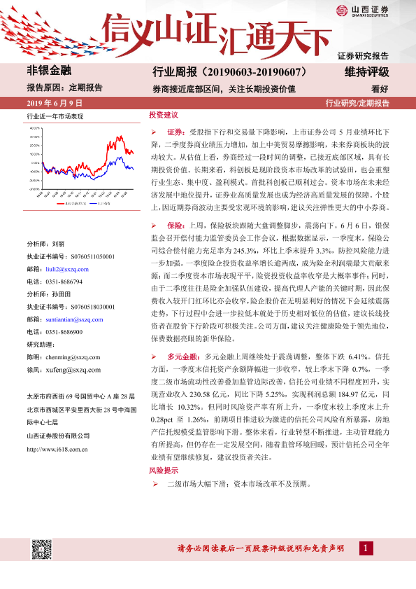 【山西证券】【20190609】非银金融行业周报:券商接近底部区间,关注长期投资价值-6页