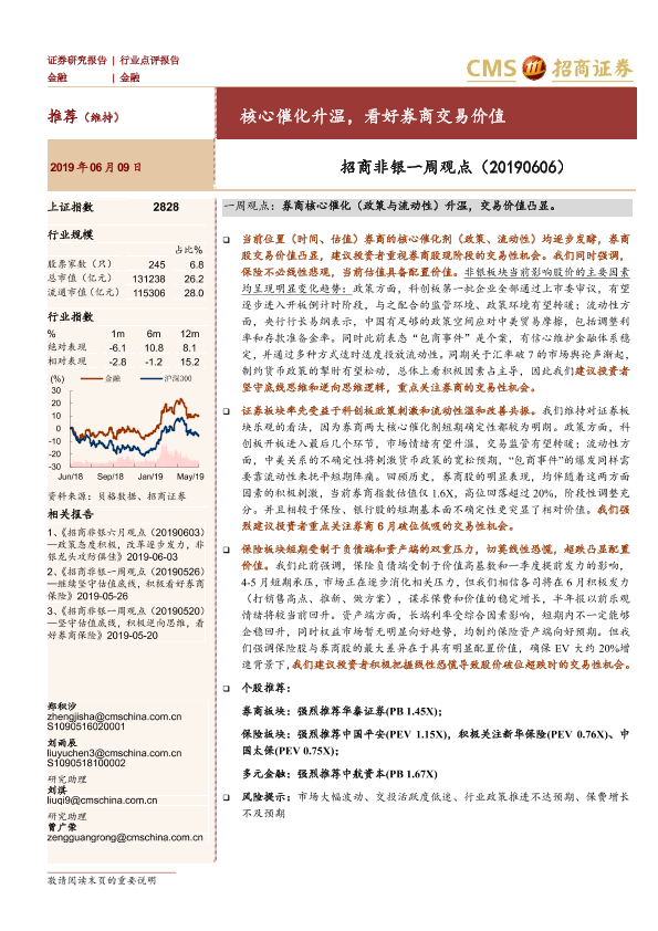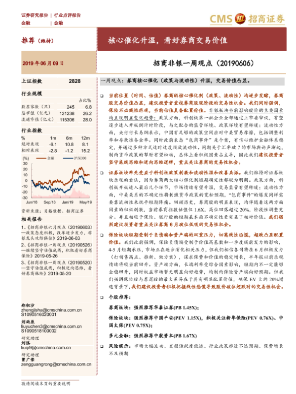【海通证券】【20190609】招商非银一周观点:核心催化升温,看好券商交易价值-9页