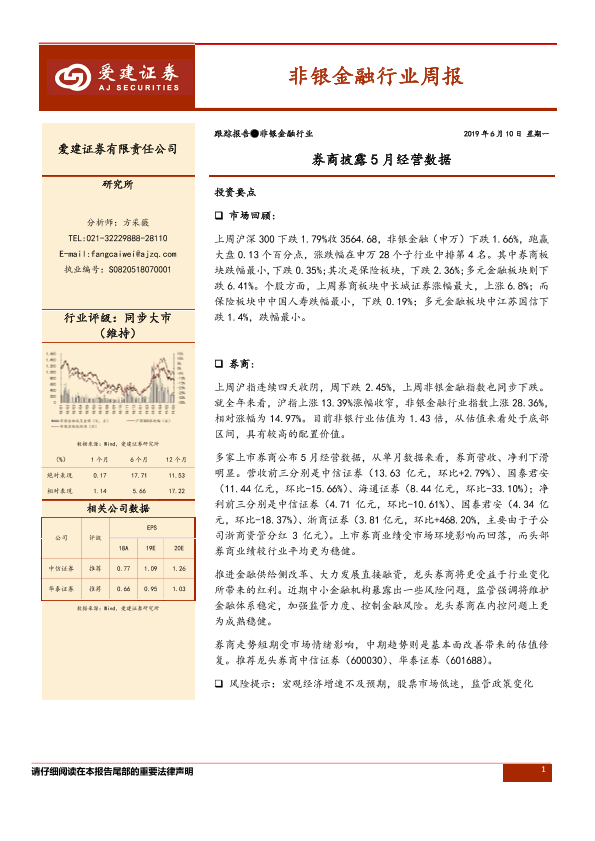 【爱建证券】【20190610】非银金融周报:券商披露5月经营数据-11页