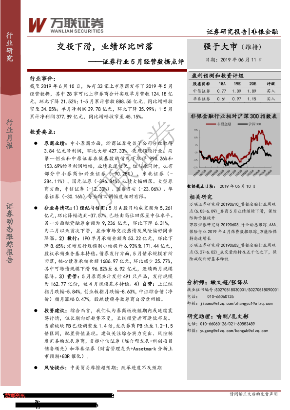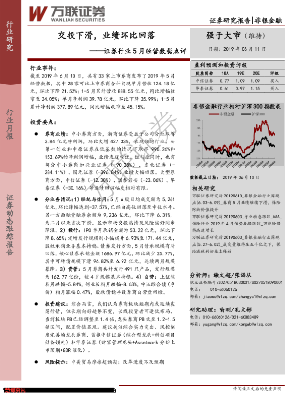 【万联证券】【20190611】证券行业5月经营数据点评:交投下滑,业绩环比回落-9页