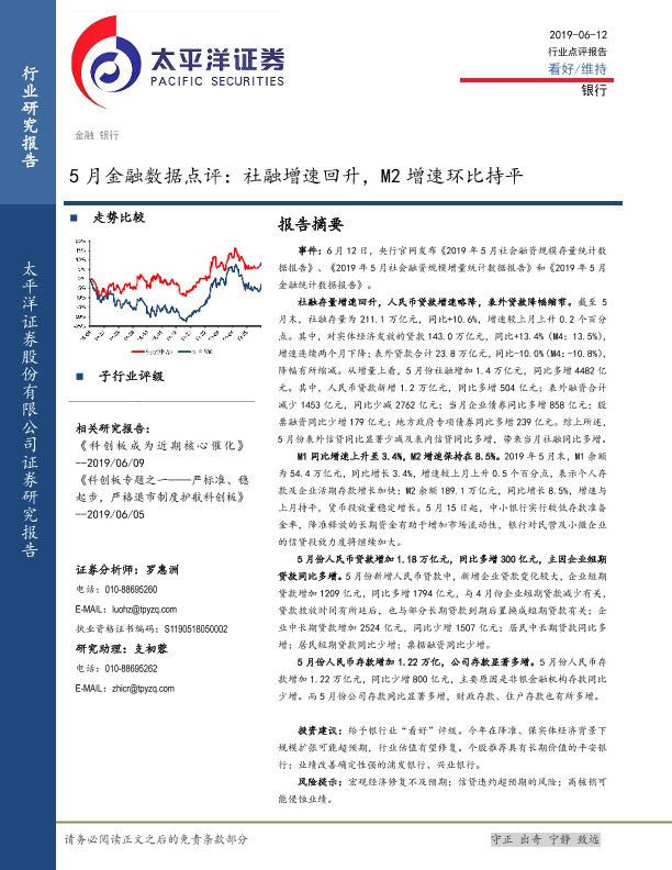 【太平洋证券】【20190612】5月金融数据点评:社融增速回升,M2增速环比持平-10页
