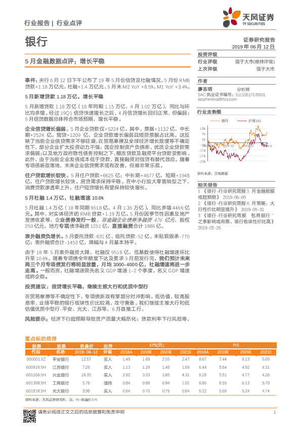 【天风证券】【20190612】银行5月金融数据点评:增长平稳-5页