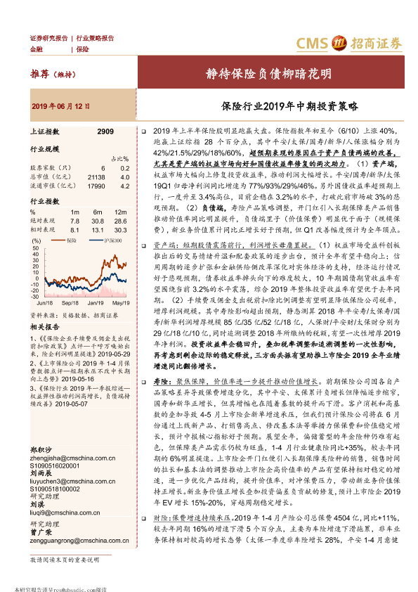 【海通证券】【20190612】保险行业2019年中期投资策略:静待保险负债柳暗花明-16页