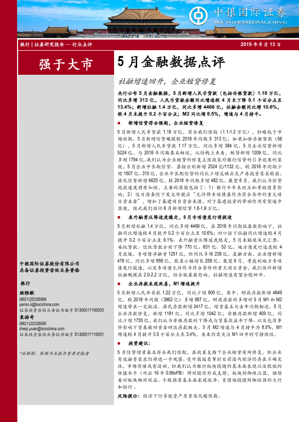 【中银证券】【20190613】5月金融数据点评:社融增速回升,企业短贷修复-6页