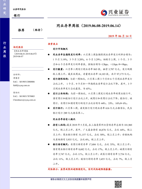 【兴业证券】【20190614】同业存单周报-10页