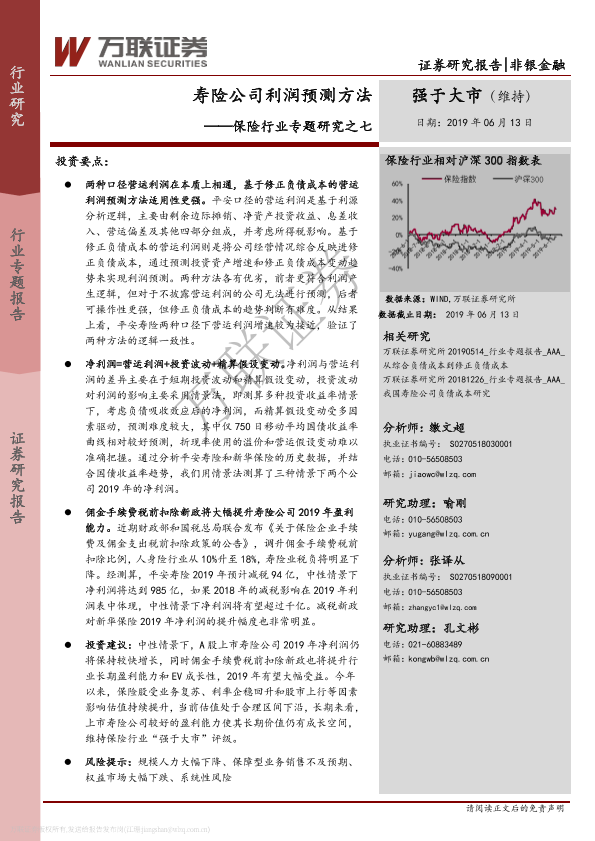 【万联证券】【20190613】保险行业专题研究之七:寿险公司利润预测方法-15页