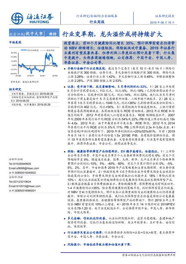 【海通证券】【20190616】综合金融服务行业周报:行业变革期,龙头溢价或将持续扩大-13页