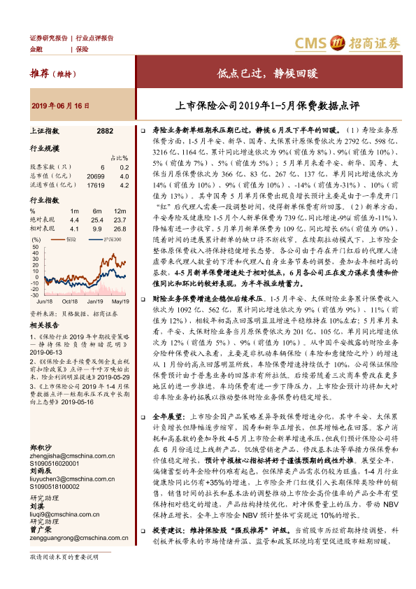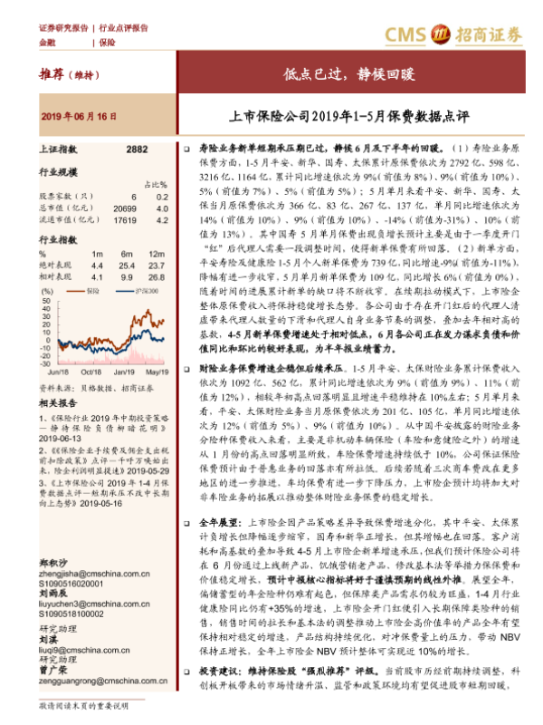【海通证券】【20190616】上市保险公司2019年1-5月保费数据点评:低点已过,静候回暖-5页