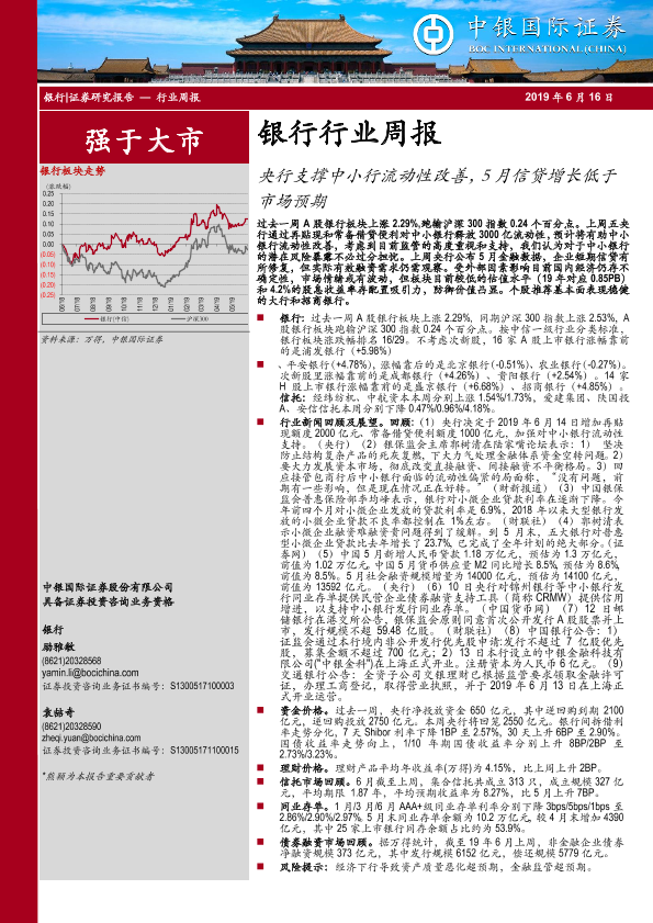 【中银证券】【20190616】银行行业周报:央行支撑中小行流动性改善,5月信贷增长低于市场预期-19页