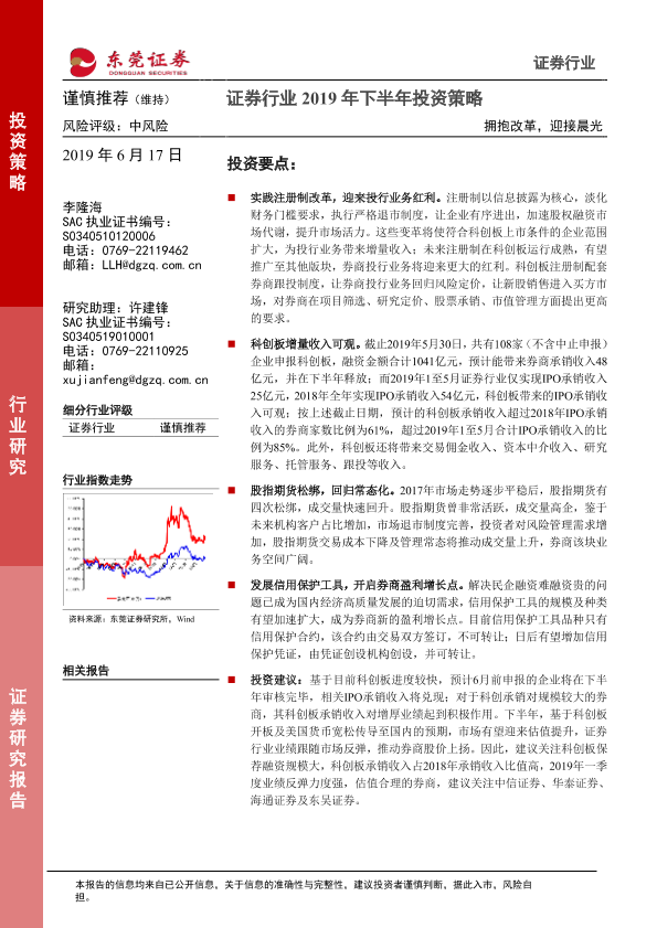 【东莞证券】【20190617】证券行业2019年下半年投资策略:拥抱改革,迎接晨光-25页
