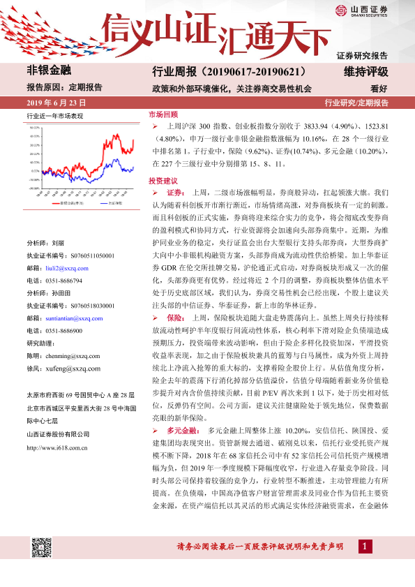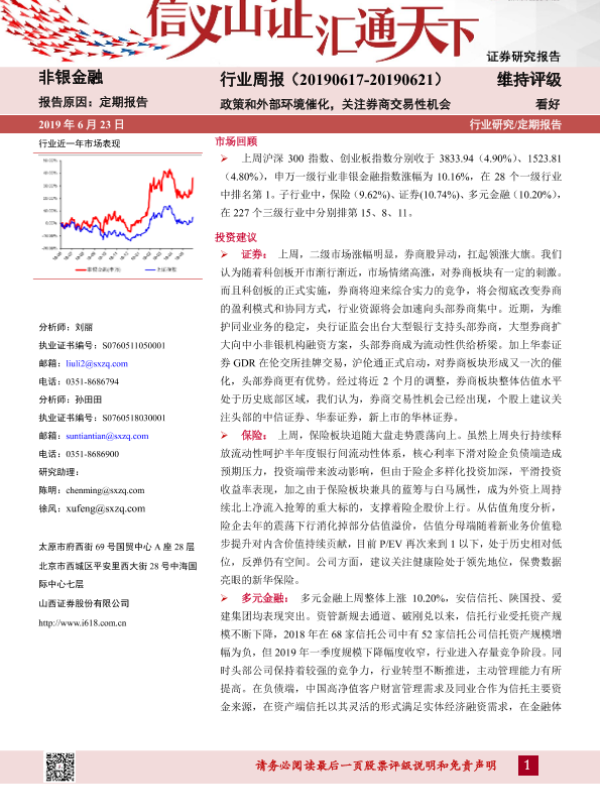 【山西证券】【20190623】非银金融行业周报:政策和外部环境催化,关注券商交易性机会-7页