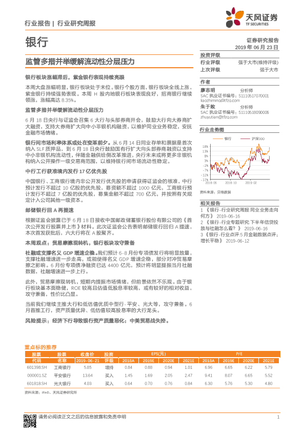 【天风证券】【20190623】银行行业研究周报:监管多措并举缓解流动性分层压力-14页