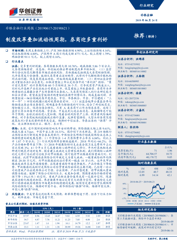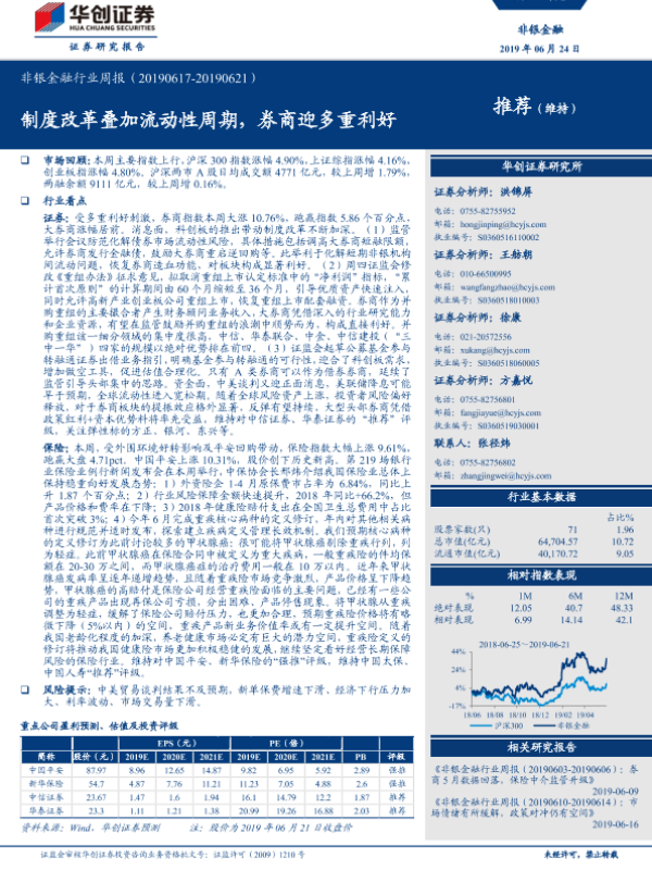 【华创证券】【20190624】非银金融行业周报:制度改革叠加流动性周期,券商迎多重利好-17页