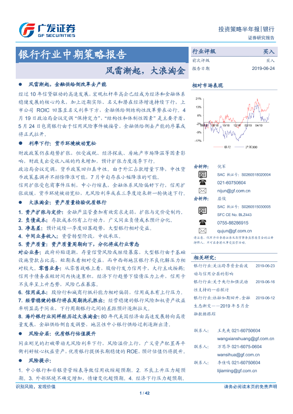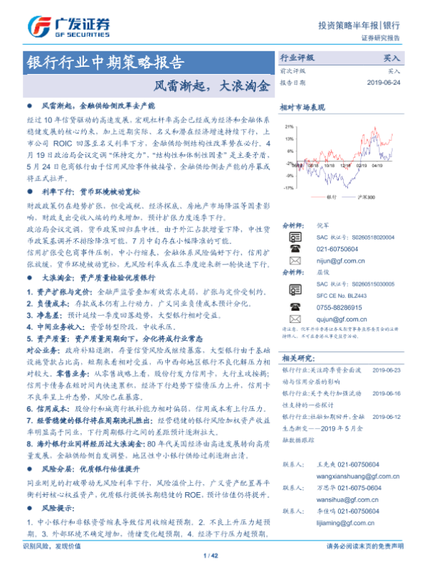 【广发证券】【20190624】银行行业中期策略报告:风雷渐起,大浪淘金-42页